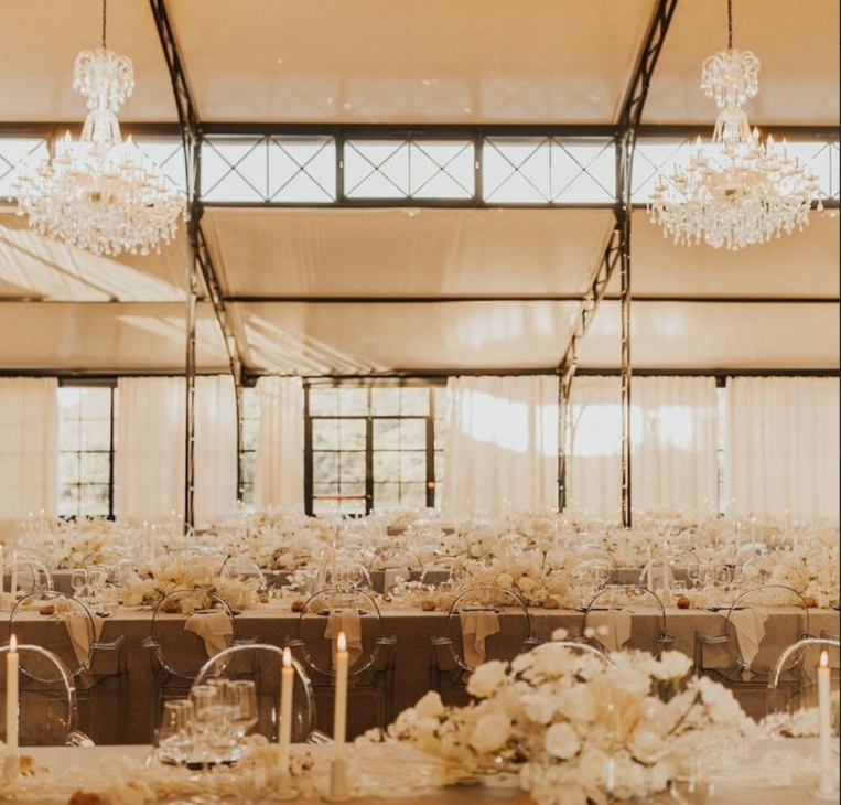 Dans l'orangerie et ses lustres Voyez grand pour votre grand jour et organisez votre réception dans l'orangerie. Vous dinerez sous la lumière des lustres.